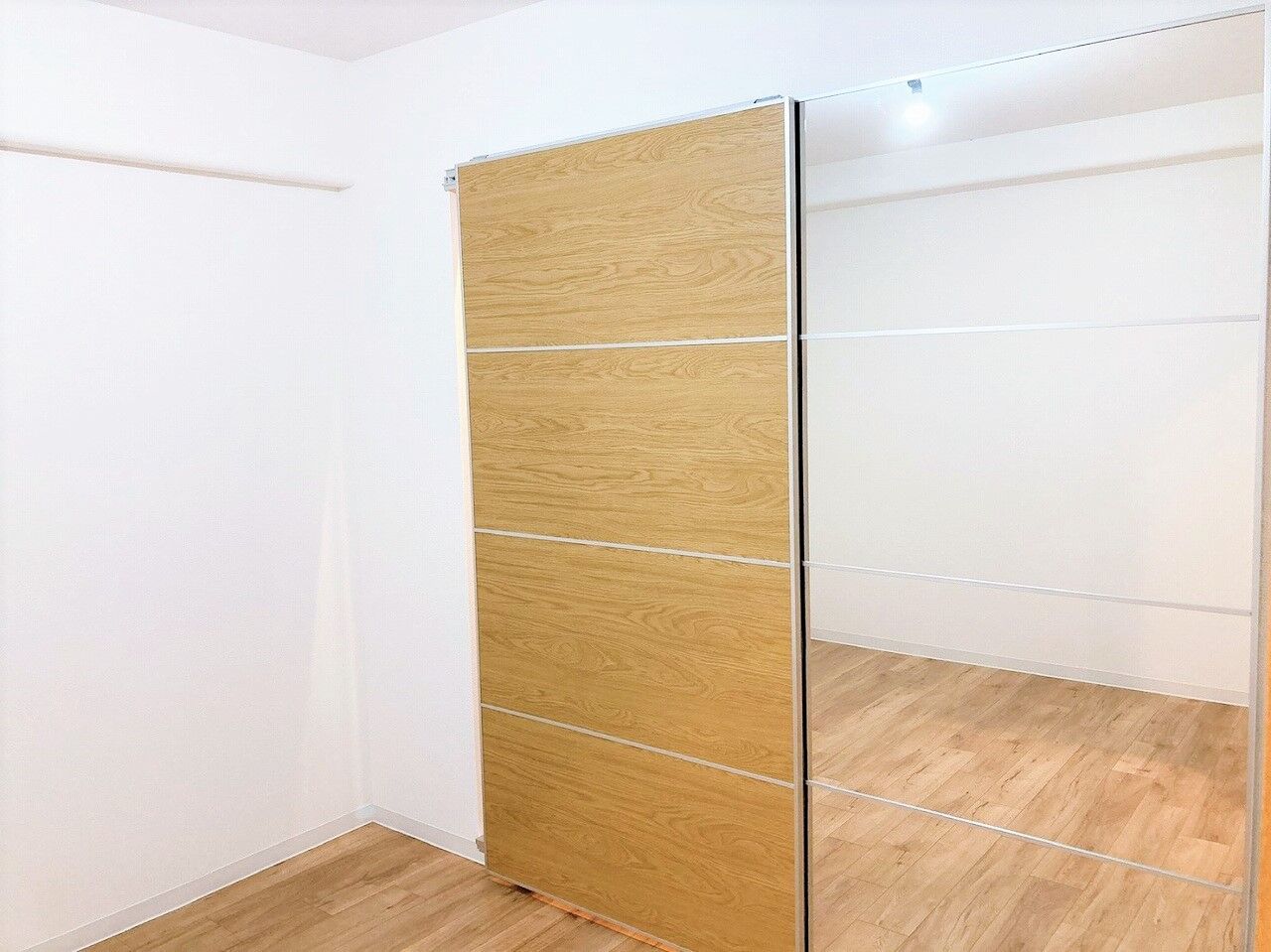 鏡面が付いた引き違いのドアのおかげで