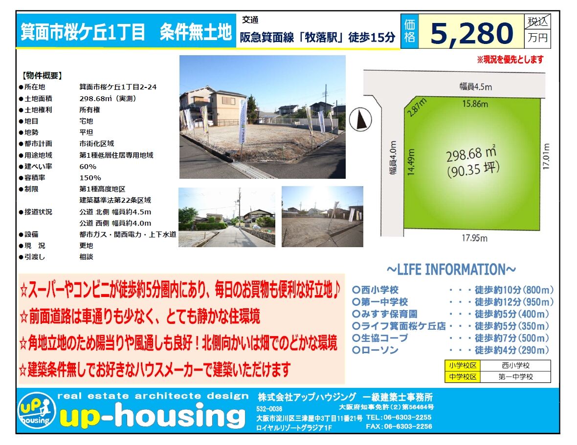箕面市桜ケ丘1丁目 売土地